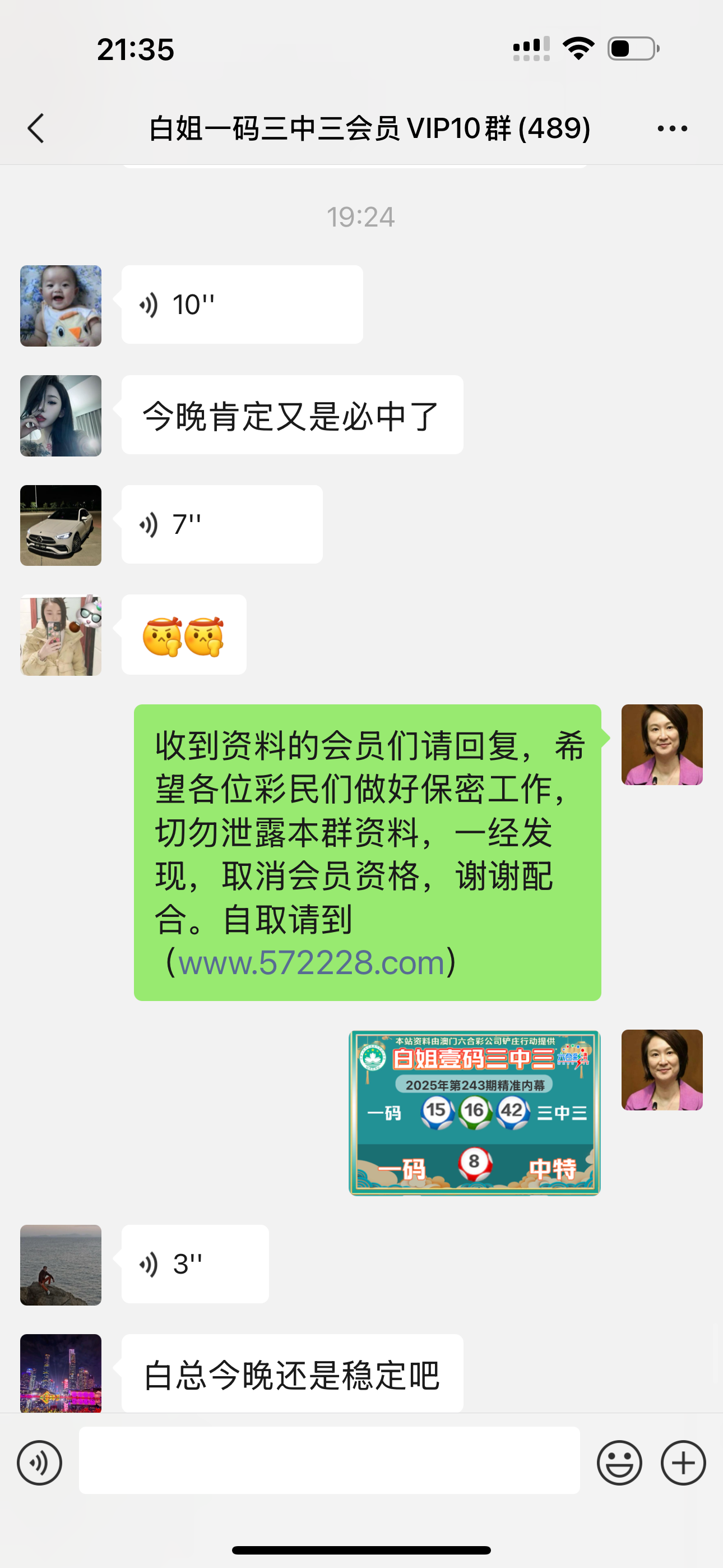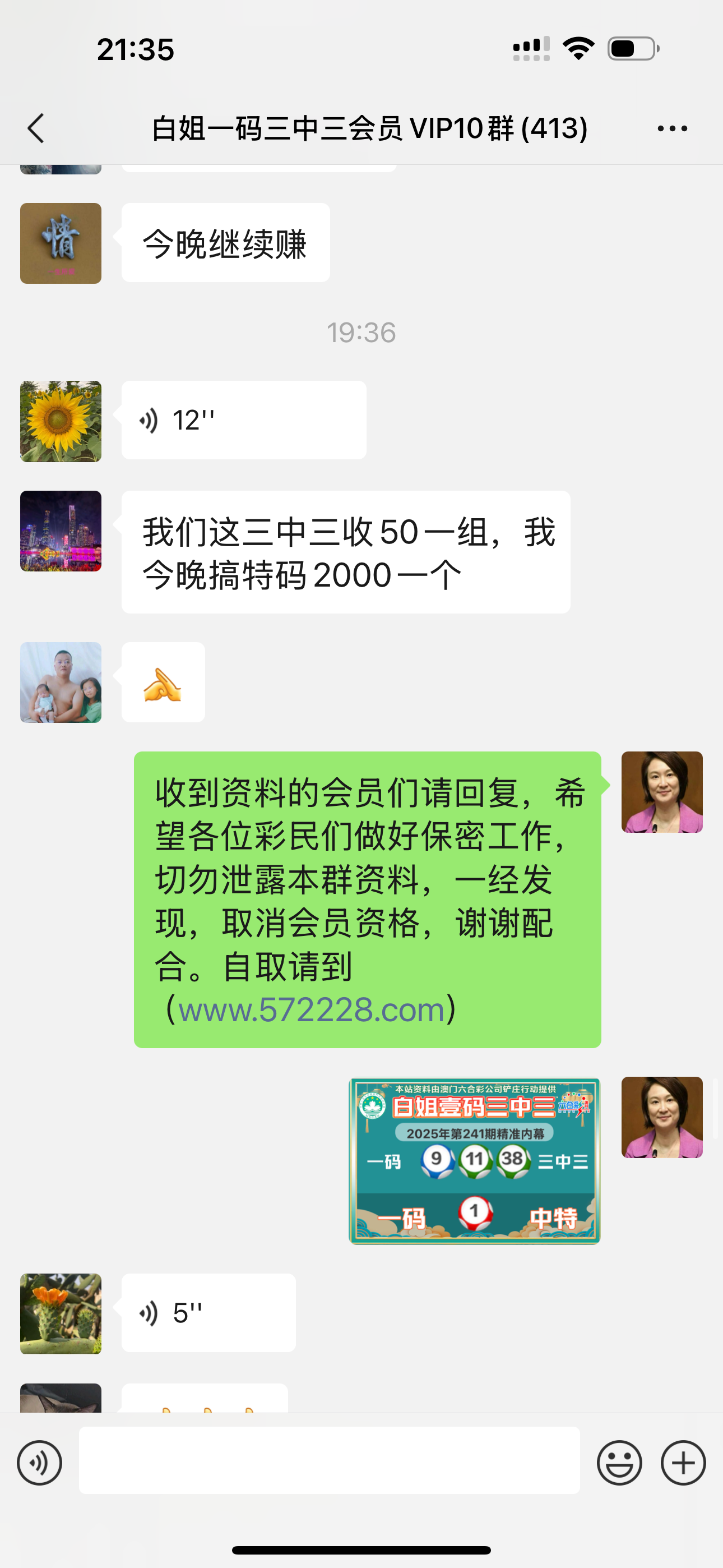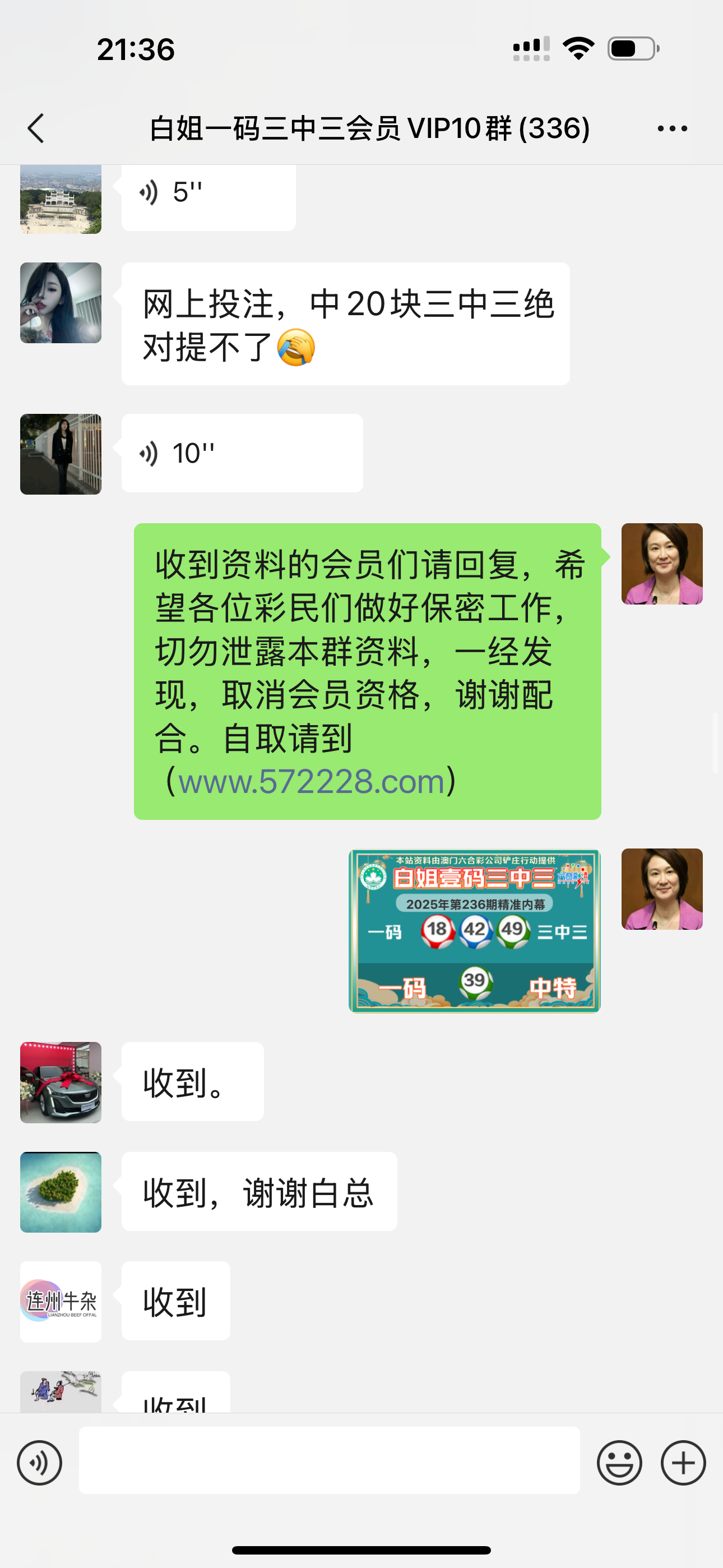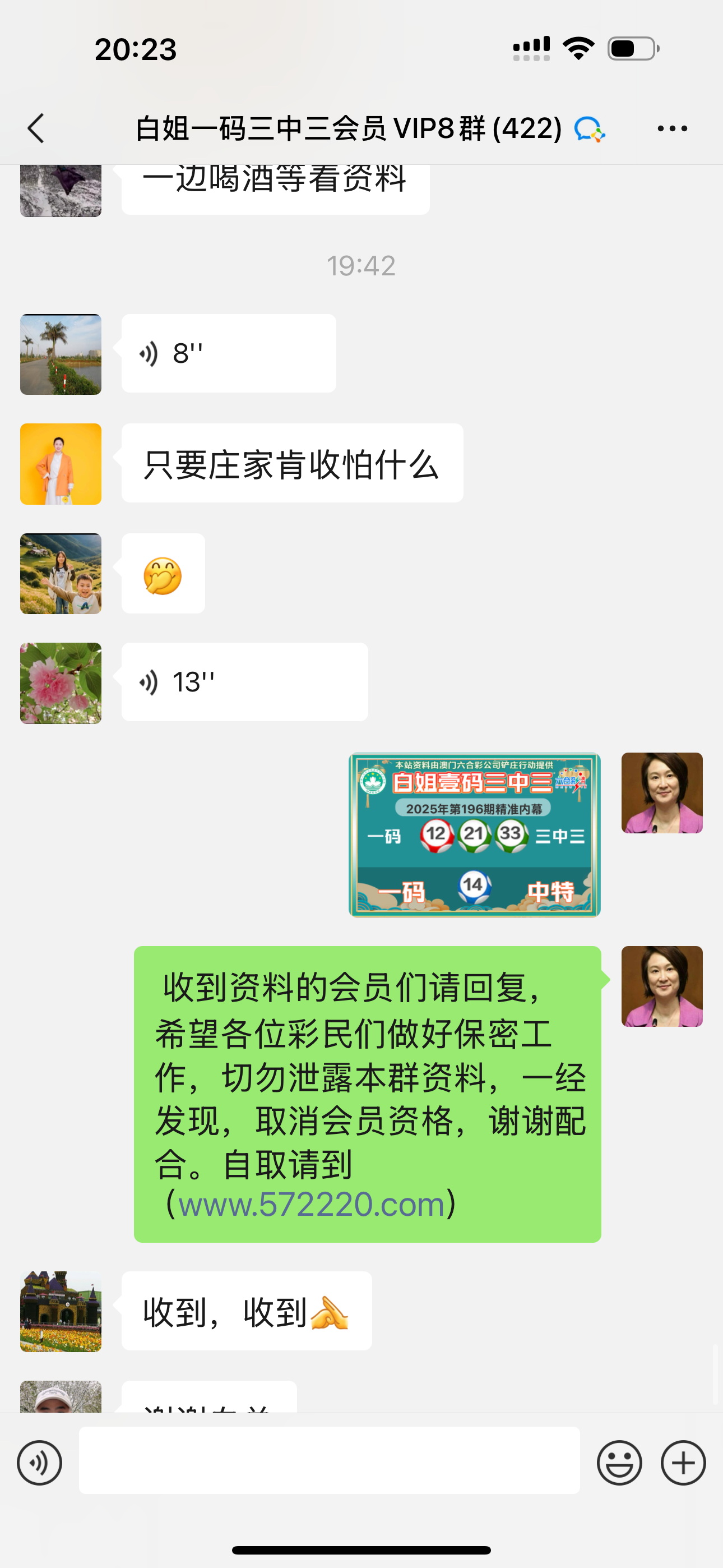 白姐一码三中三】作为顶尖资料站,已经确实颇有名气,就算不认识但听说过“白姐一码三中三”的朋友亦不在少数。我们不但没有弄虚作假,而且四年来每期都提前三五分钟公布号码,让千万彩民一起亲身见证我们的实力!我们的会员遍布全国及帮助众多彩民快速致富,堪称一个[百万富翁制造工厂]!请您放心入会,大胆合作!现在立即加入会员,马上领取资料!